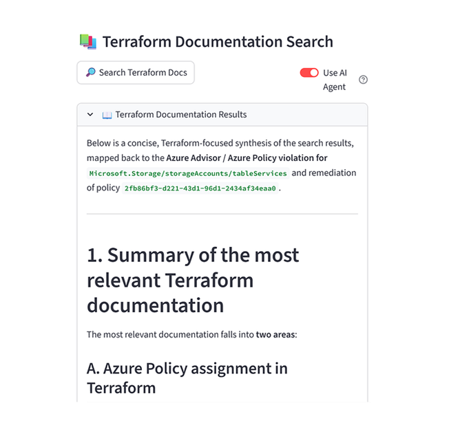Early versions looked convincing but were wrong because they used outdated attributes, missed dependencies, or produced generic fixes that did not match our environment. These issues disappeared once the system combined two sources of truth: current documentation and our actual Terraform state.